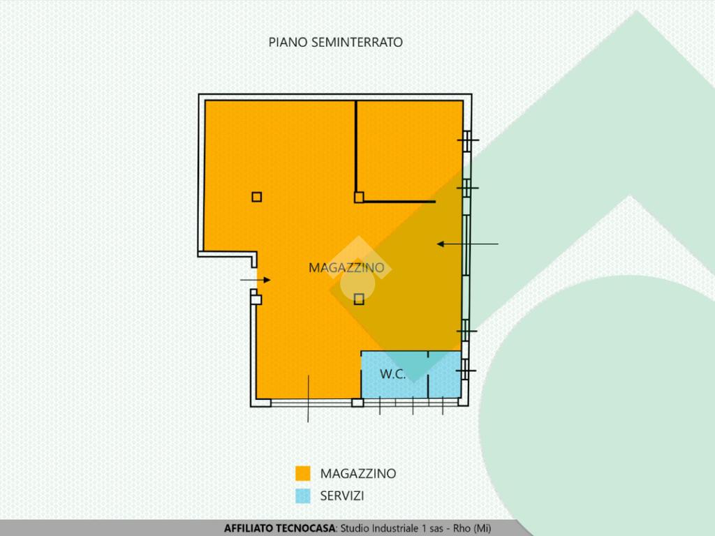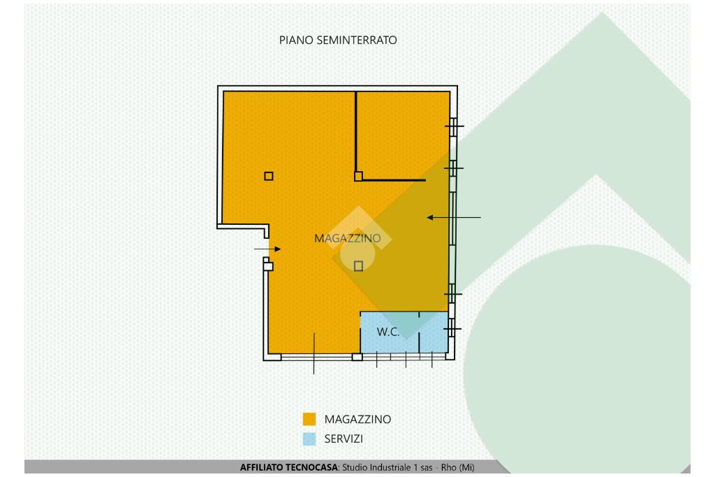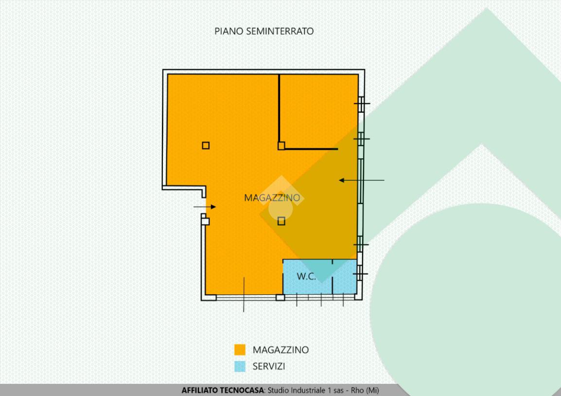 Zona industriale. Piano seminterrato. Deposito 170 mq. Riscaldamento. Illuminazione. Accesso pedonale. Libero subito.