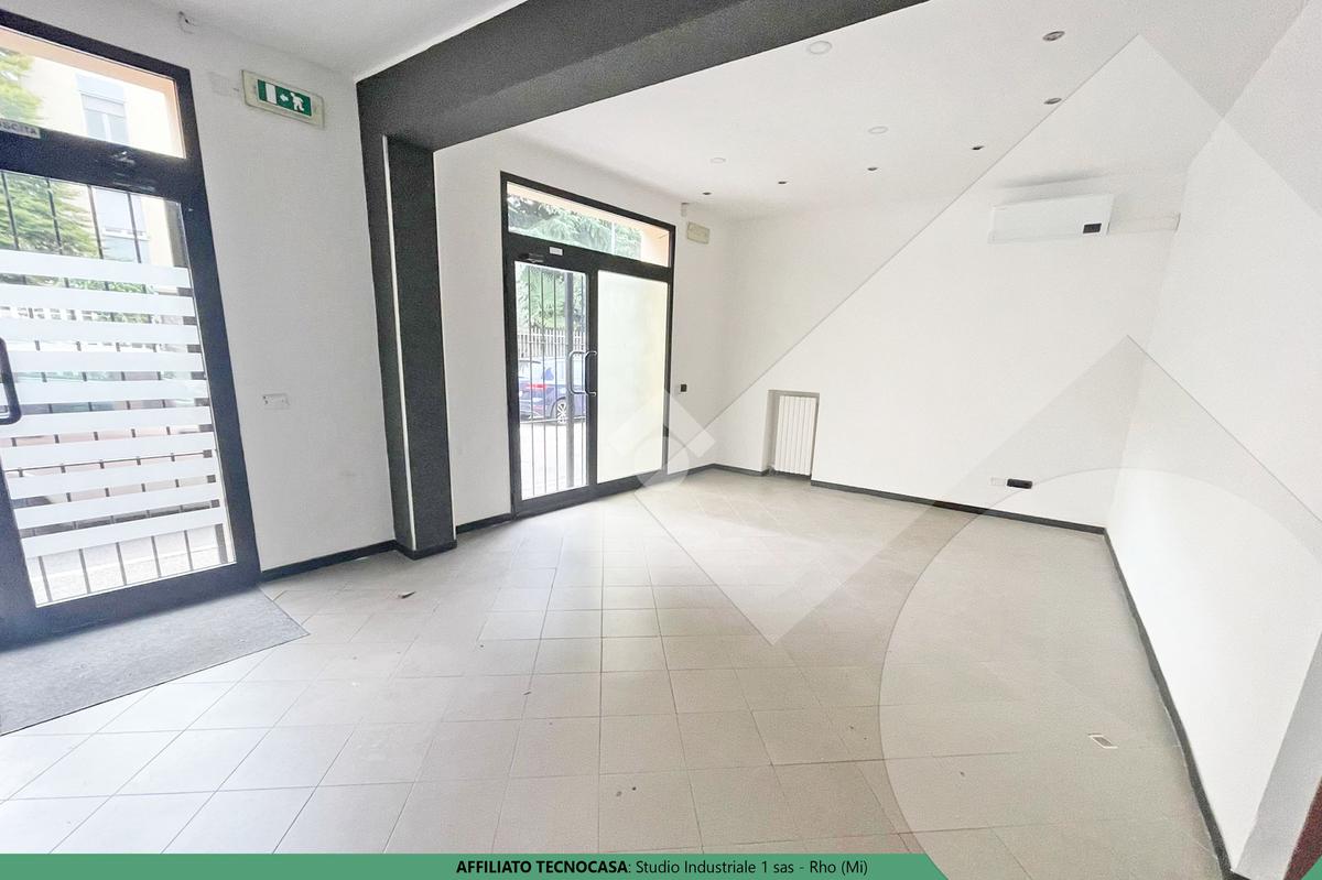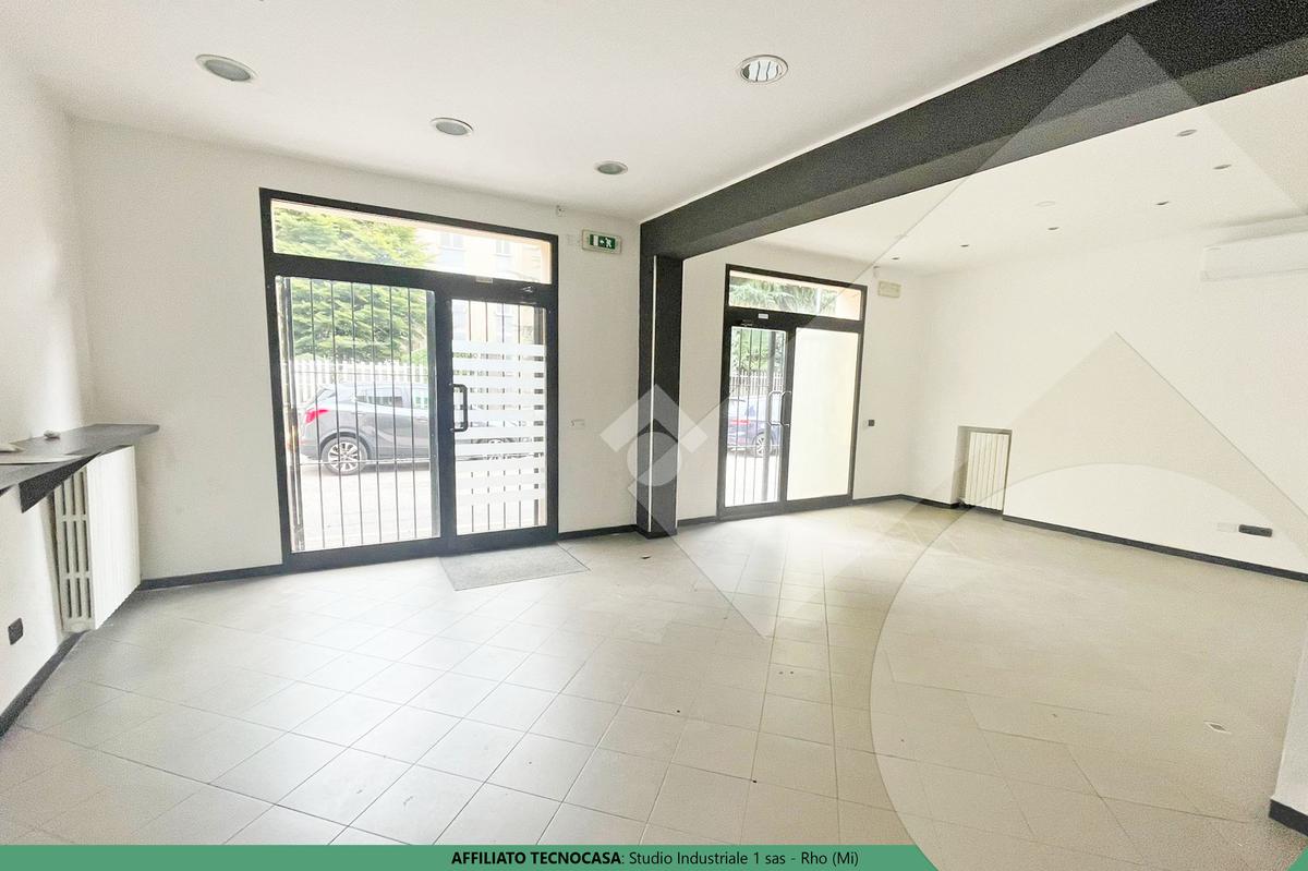 RHO, IMMOBILE COMMERCIALE Immobile commerciale. Ottime condizioni interne. 2 Vetrine. 2 locali. 2 ingressi indipendenti. 1 uscita di sicurezza. 2 Servizi igienici. Illuminazione. Impianto elettrico. Riscaldamento e condizionamento.